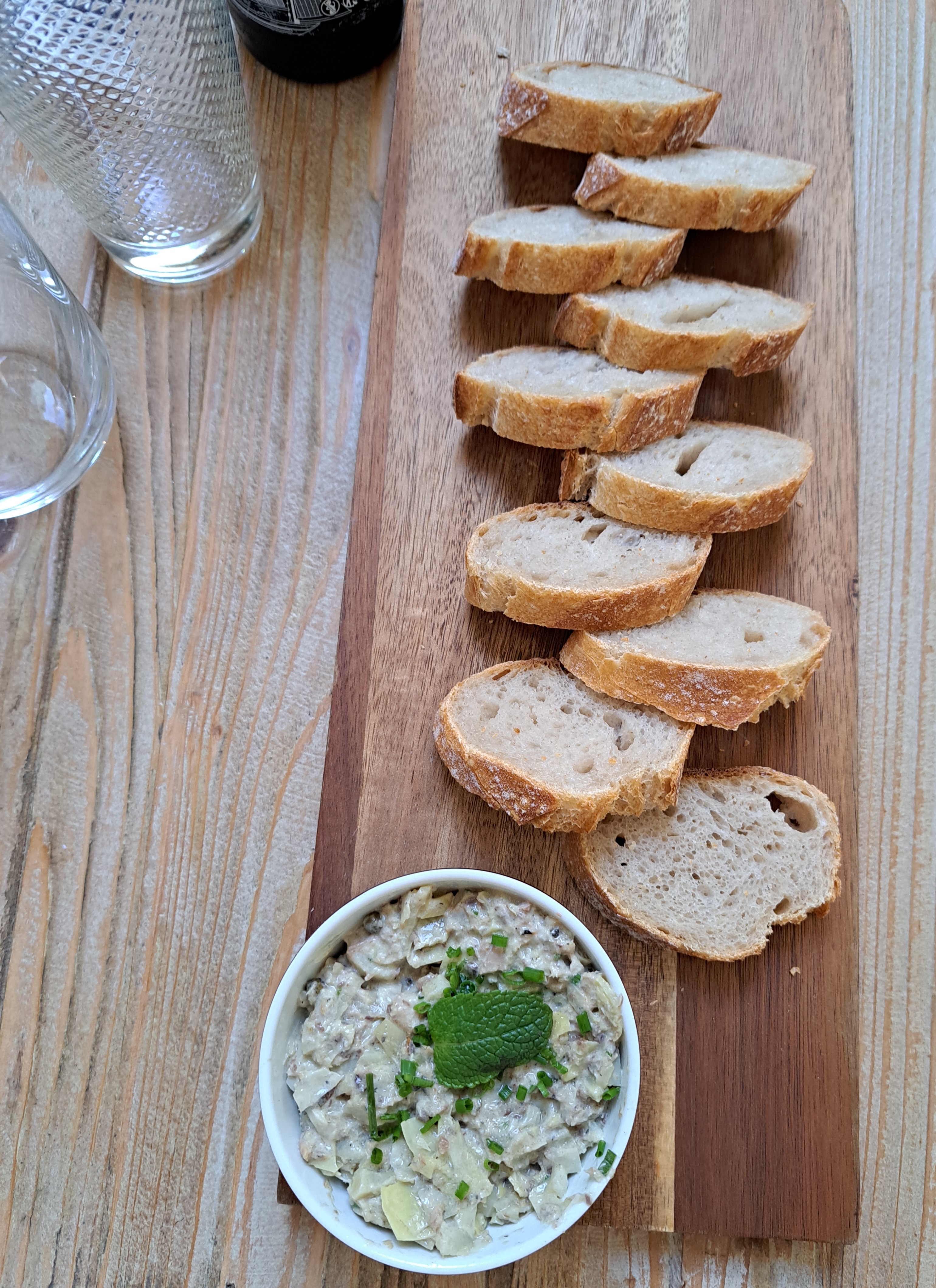먼저 나온 생선 리예뜨. 이름만 들었을때는 비릴 줄 알고 남편이 먹어볼래 ? 했을때 됐다고 했는데 맛있다면서 그래도 한번 먹어보라길래 먹어봤는데 정말 하나도 안 비리고 맛있었다.